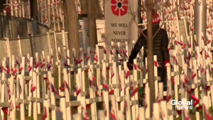 It was a big task for staff and students from Delta West Academy: out in the chilly air Monday morning adorning 3,400 crosses with donated poppies at Calgary’s Field of Crosses on Memorial Drive.